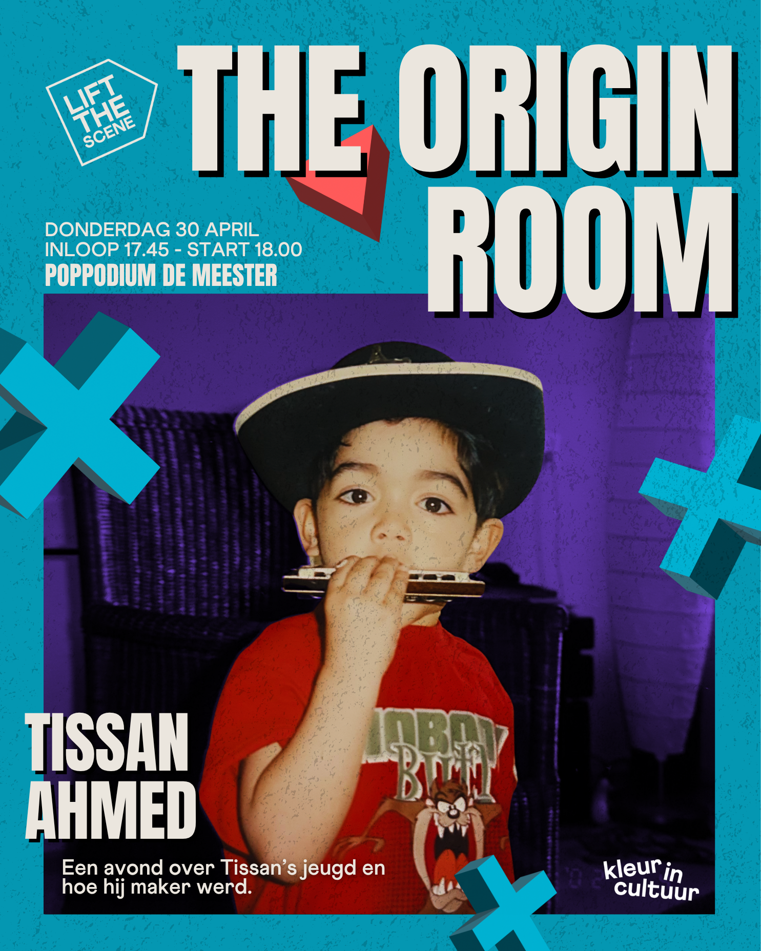 Deze avond duiken we in de wereld waar het voor Tissan begon. Niet vanuit één vast moment, maar vanuit thuis. Een plek vol muziek, beweging, familie, beelden, geur en geluid. Waar Bollywoodfilms draaiden, karaoke vanzelfsprekend was en creativiteit niet iets was wat je hoefde te leren, maar iets wat er gewoon al was. Tijdens deze avond neemt Tissan je mee langs zijn eerste vormen van maken. Van dansen voor de televisie tot rap en spoken wordt, en van taal naar fashion. Een persoonlijk verhaal over hoe creativiteit ontstaat, verschuift en steeds nieuwe vormen aanneemt.